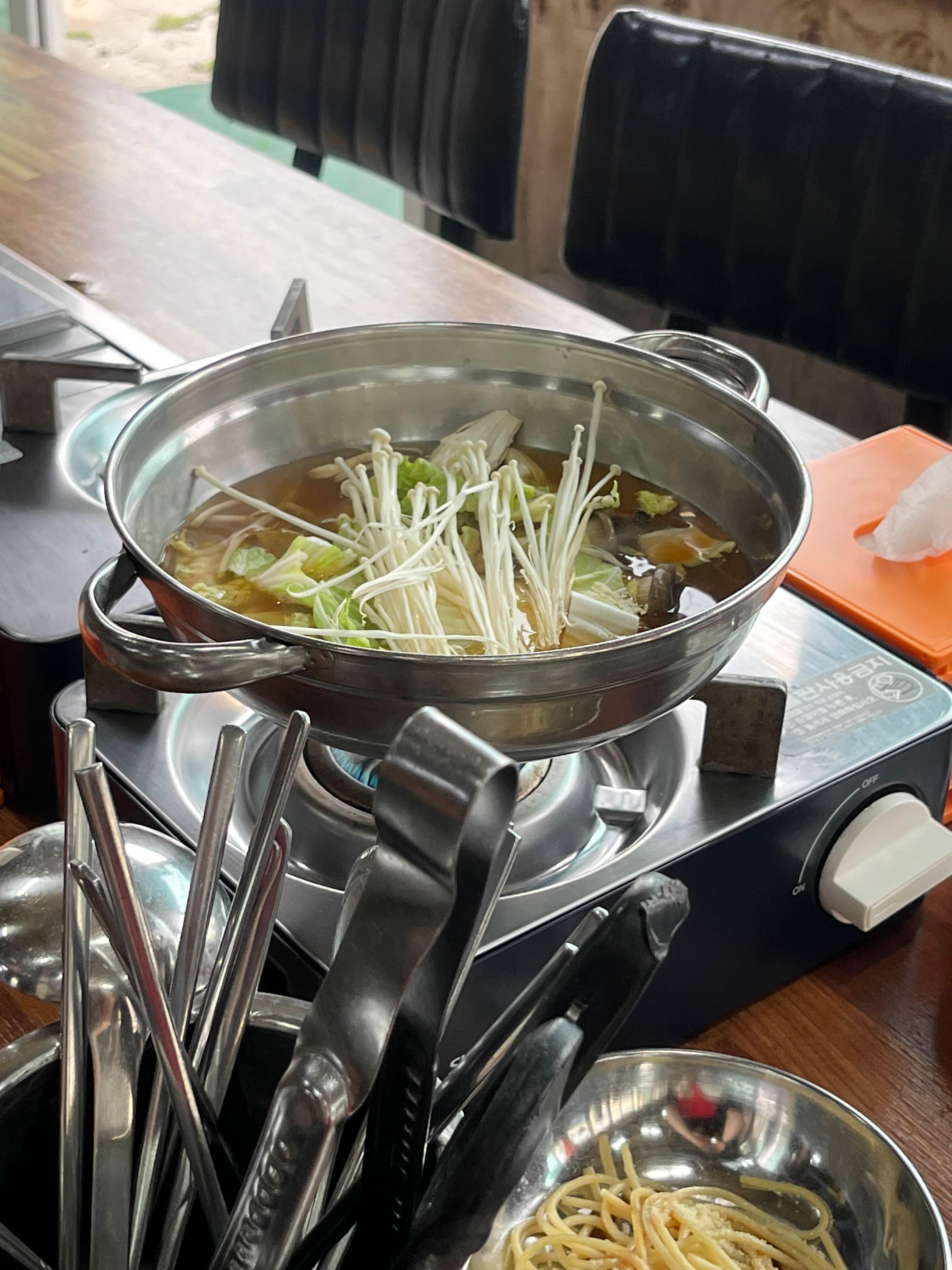 고기가 익기 전에 샤브샤브로 배고픔을 달래줬어요🤩
